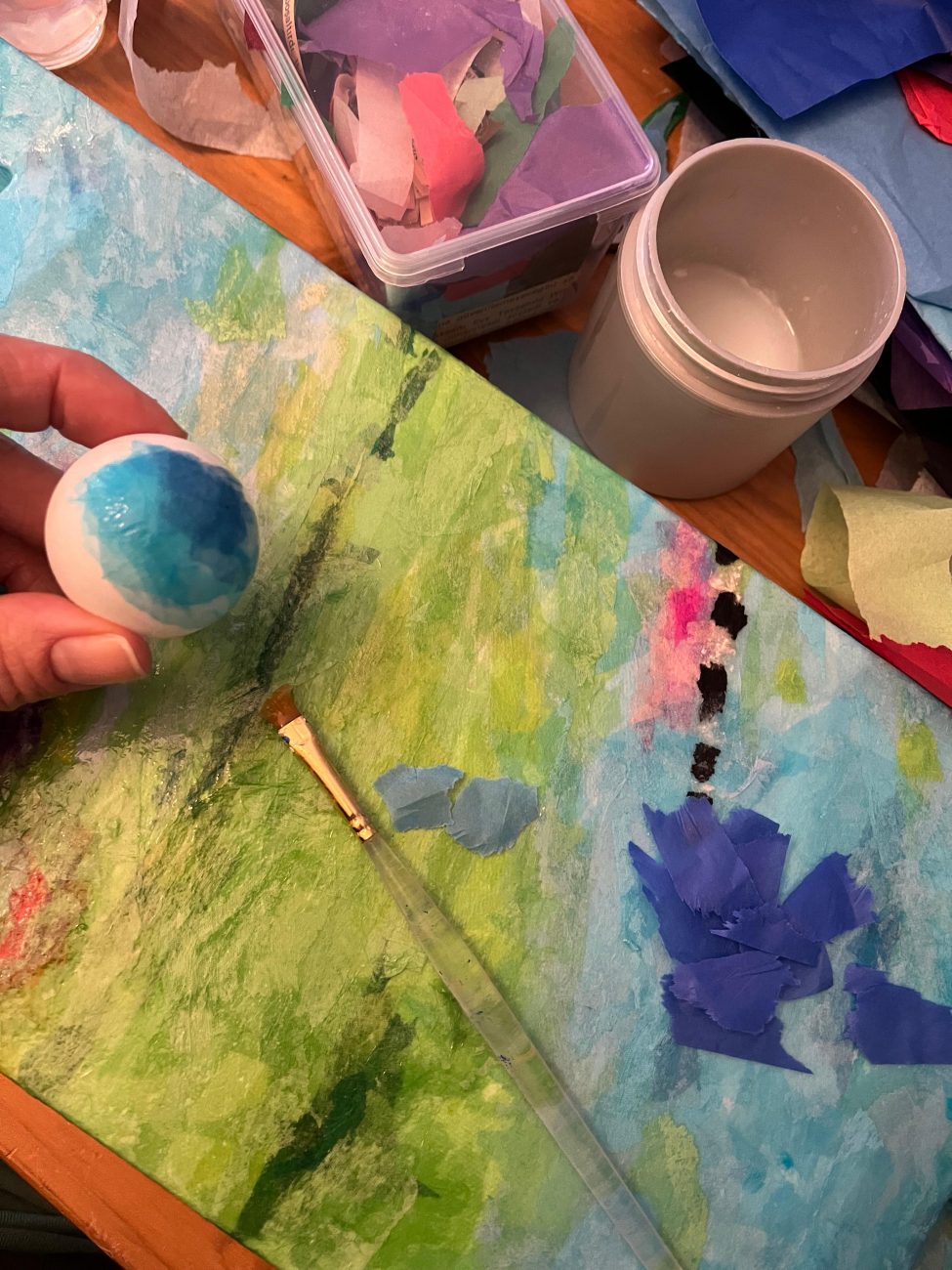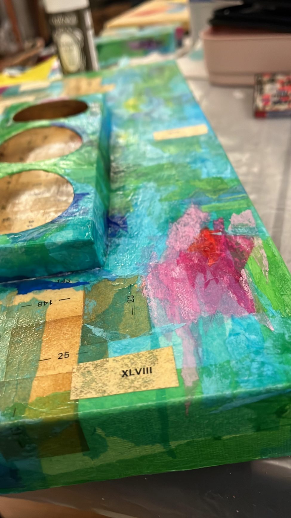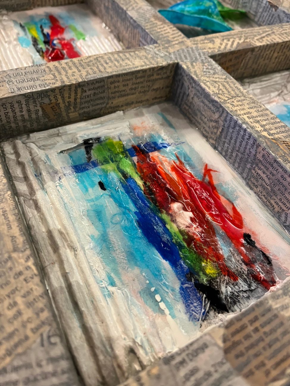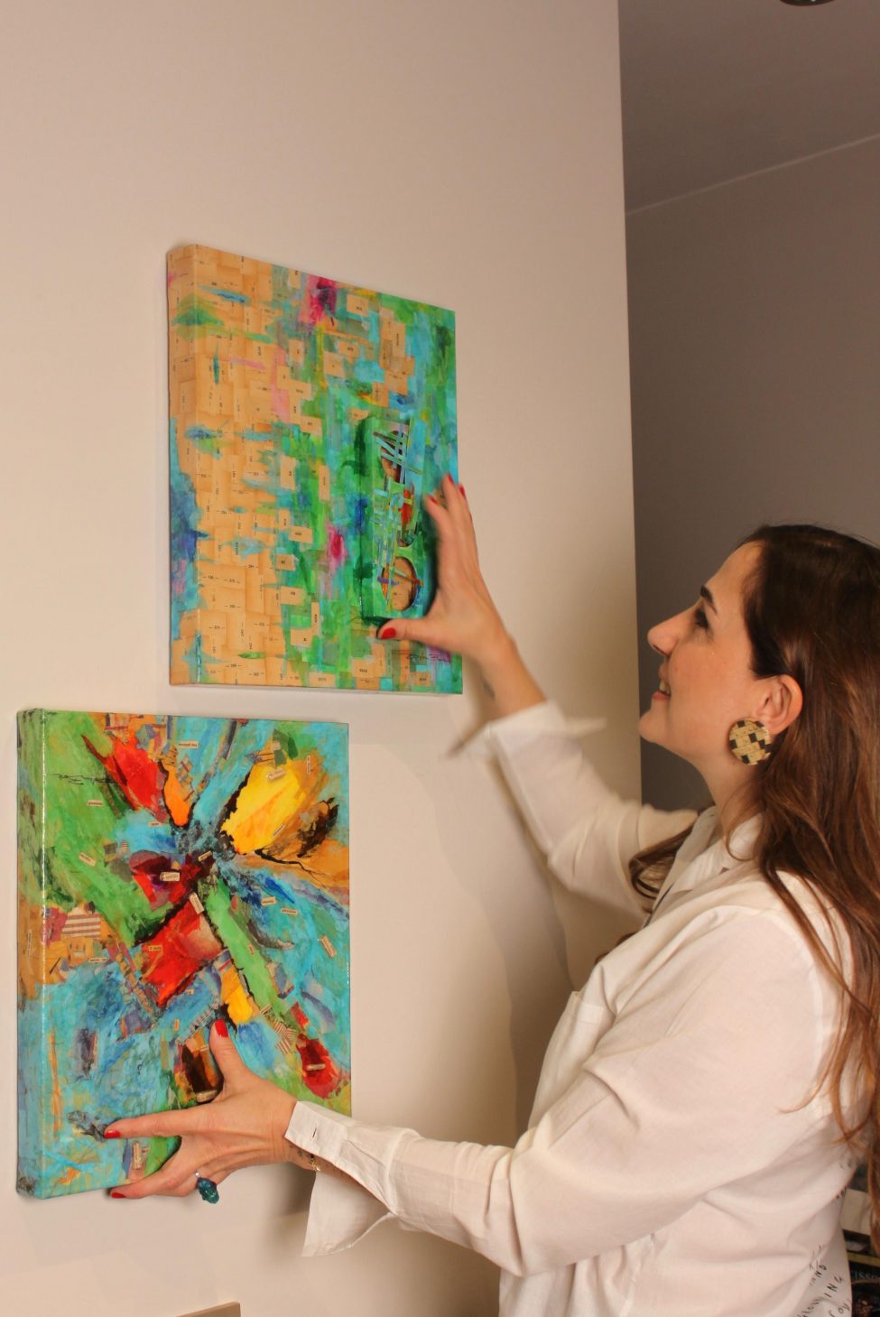 Sonrasında kendi geliştirdiğim tekniklerle kağıtları tuvallere taşıdım.