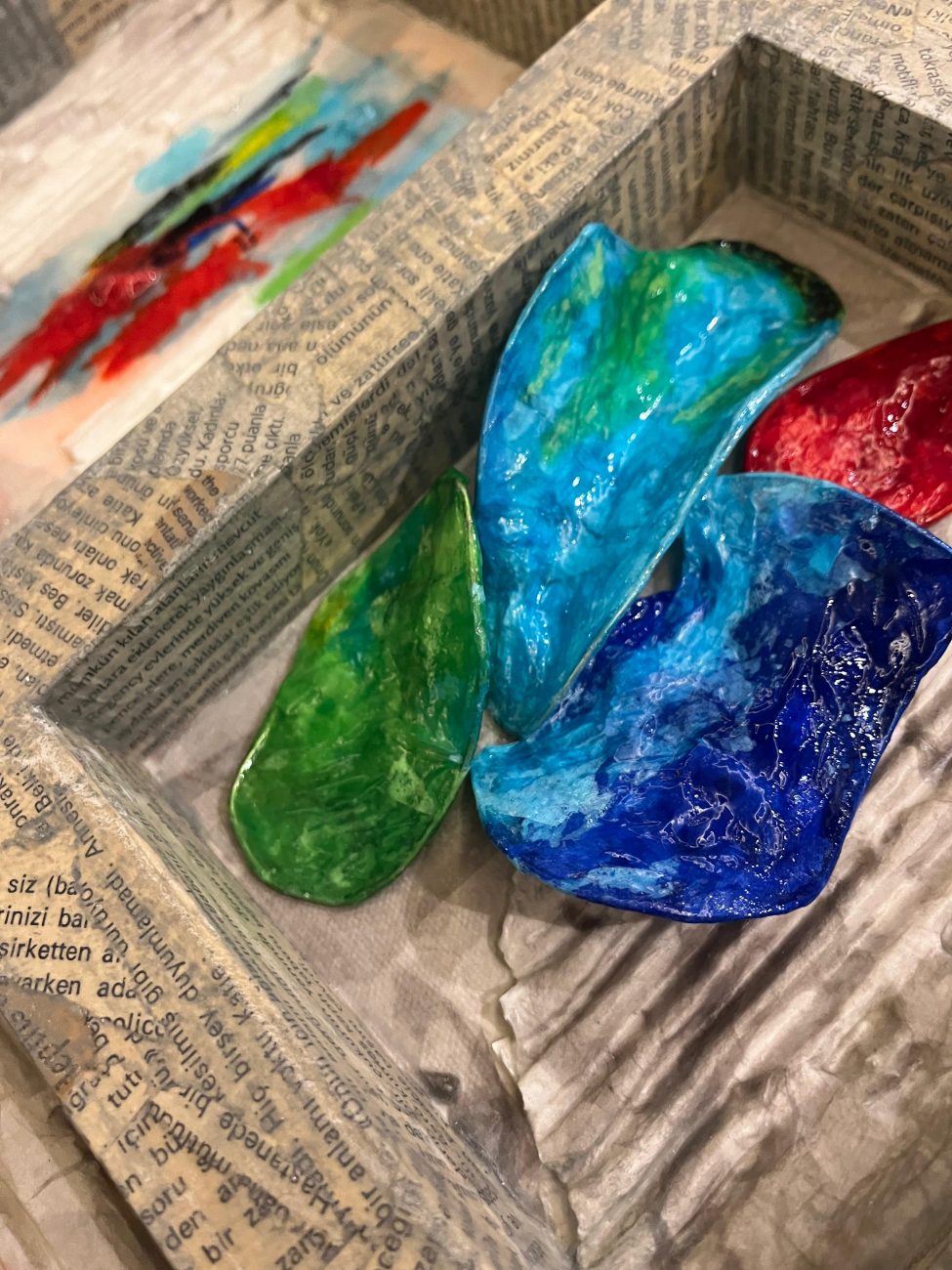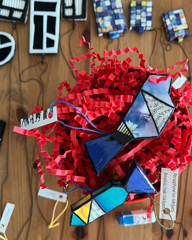 2021 yılında kendime doğru çıktığım bir seyahat sırasında annem vasıtasıyla kağıtlarla tanıştım. Kağıtlardan dışavurumcu bir dünya yarattım ve ortaya çağdaş mücevherler, aksesuarlar ve heykelcikler çıktı.